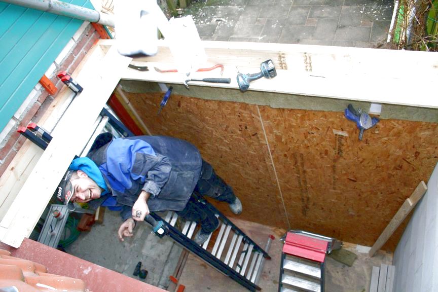 Een leuke opdracht was het maken van een hoogslaper voor de dochter van een gezin in Utrecht. Het moest van een bepaald formaat zijn en de opdracht was dat er een kledingkast onder moest en een leuk zitbankje. De dochter hield van dansen voor de spiegel, dus wilden ze graag spiegels verwerkt hebben in de kastdeuren. Maar ze wilden ook niet de hele tijd in de spiegel kijken, dus bedacht ik een manier met een dubbele deur waarbij bij het openvouwen van de deur de spiegel te zien is maar als ze dicht zijn zie je gewoon het hout. Ze hebben het geheel zelf gezellig aangekleed. De dochter maakt er met veel plezier gebruik van heb ik begrepen.